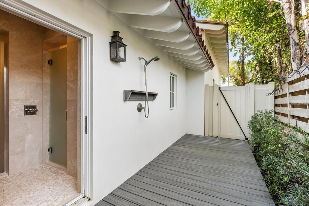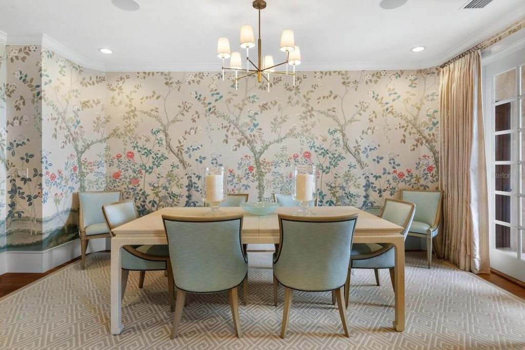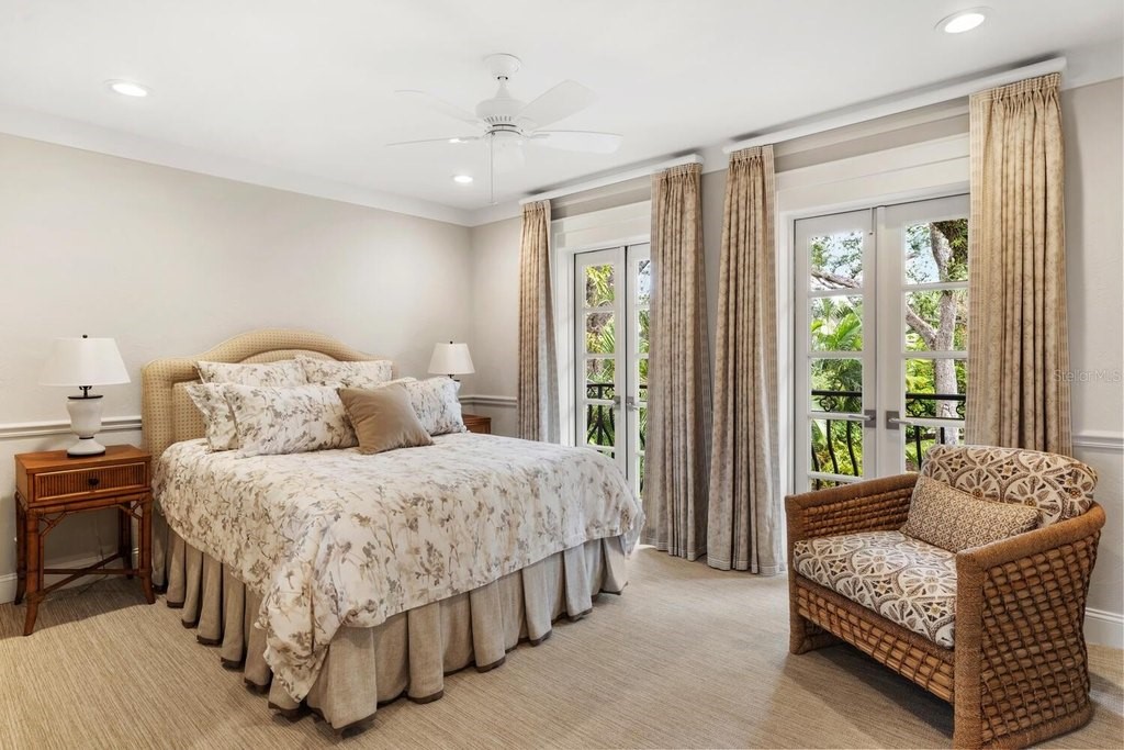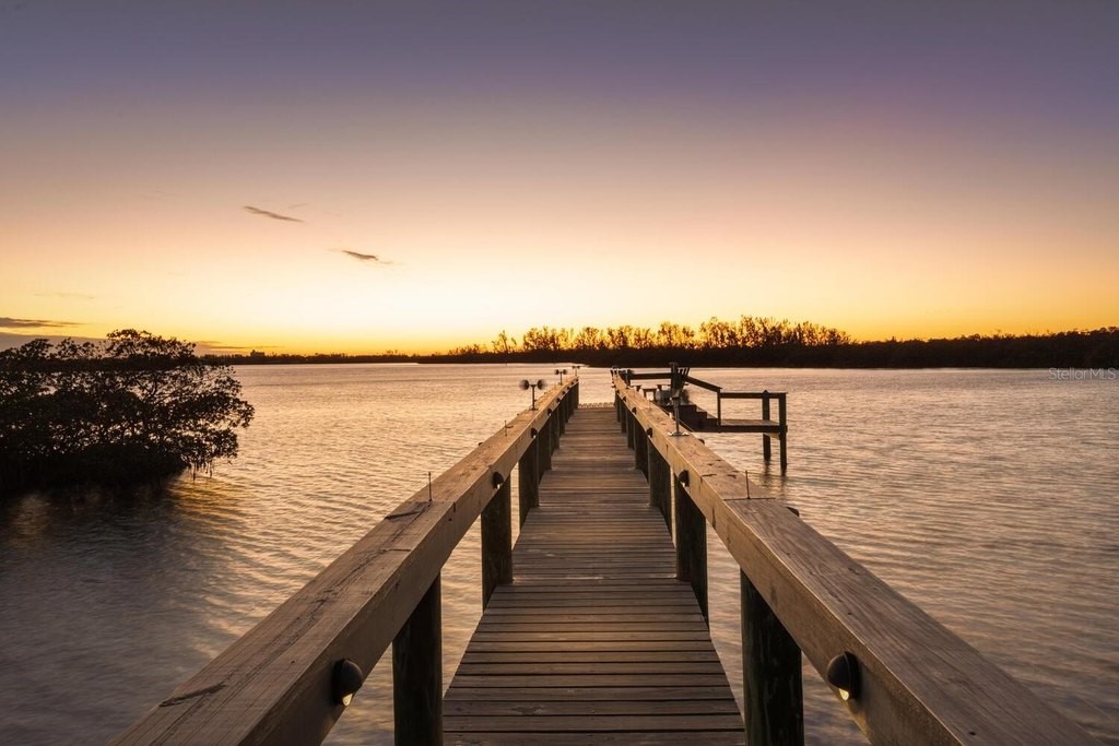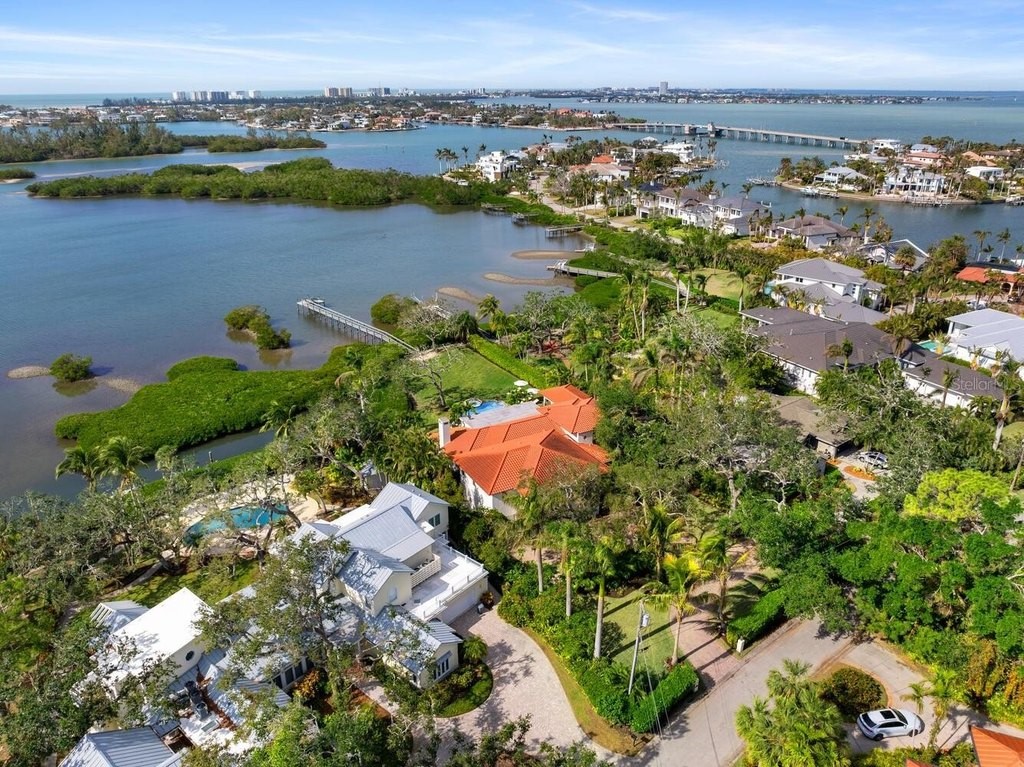 A testament to timeless elegance and the tropical charm of coastal living, securely situated at or above base flood elevation and not impacted by the recent storms, this exceptional Bayfront estate rests on nearly one acre, boasting 180 feet of water frontage and effective year built 2016. Fully renovated and expanded in 2017, it offers breathtaking, uninterrupted views of Roberts Bay and the intracoastal Waterway, where mesmerizing sunsets serve as a daily invitation to pause and savor the moment. Nestled privately off Red Rock Way, the property ensures tranquility and seclusion. A grand entrance leads you past the library into the casually sophisticated living room, featuring French doors, a custom coral gas fireplace, and French oak flooring. Adjacent to the living spaces, the dining room and expansive covered terrace create the perfect ambiance for entertaining, with coral flooring and a pecky cypress ceiling adding character and charm. The gourmet kitchen is a chef’s dream, showcasing custom cabinetry in painted wood and natural walnut, luxurious Calacatta gold marble and quartz countertops, Thermador appliances, a spacious island, and a convenient wet bar. The inviting family room, complete with a wood-burning fireplace and French doors, opens to yet another terrace, seamlessly blending indoor and outdoor living. The master suite is a serene retreat, featuring a vaulted paneled ceiling, a large private terrace, his-and-her bathrooms, an outdoor shower, and oversized walk-in closets. The second floor hosts three en-suite bedrooms, while a fifth guest suite offers complete privacy, making it ideal for visitors. The backyard is a true oasis, highlighted by a heated pool with a spa, surrounded by fresh landscaping, mature palms, and century-old oak trees. The waterfront dock caters to boating enthusiasts, water sports lovers, anglers, and those who enjoy soaking in the sunset views. Located west of the Trail, this remarkable estate is just minutes from world-class beaches, vibrant cultural venues, exquisite dining, and an array of recreational activities.